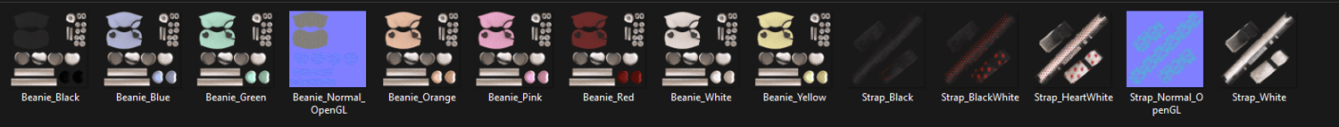 Textures: 8 Beanie Textures and 4 Strap Textures + Normals.