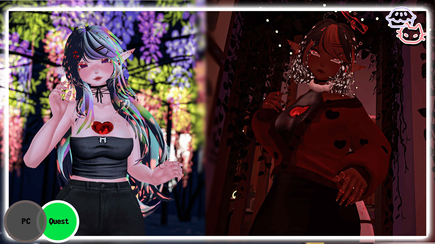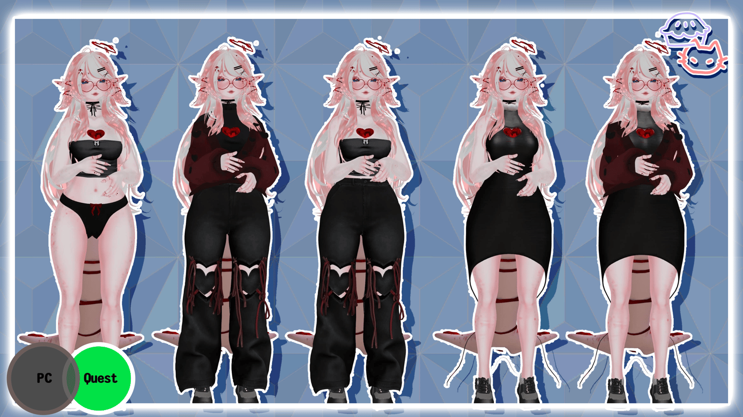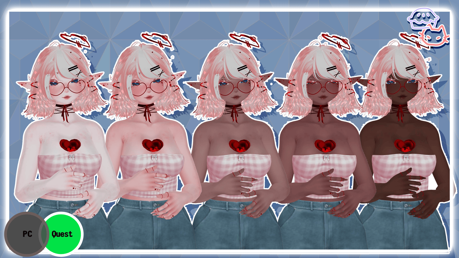 - GoGo Loco|VRC|System 1.8.6 By Franada ,Combo Gestures, Body by Zinpia(Heavy Edit- no reuse), Body & Face Textures from yingYangVR, Starlight Head - Starlynn(edit no reuse), Follower - BearTrap, Jeans-Lesh, Tubetop-Sleepy, Heart Horns-Starkotic, Bangs-Saikura, Back long hair- Velvet,Ponytail + Bob hair - Nessy, Eye Texture- MissyMod, Sneakers- Sohvi